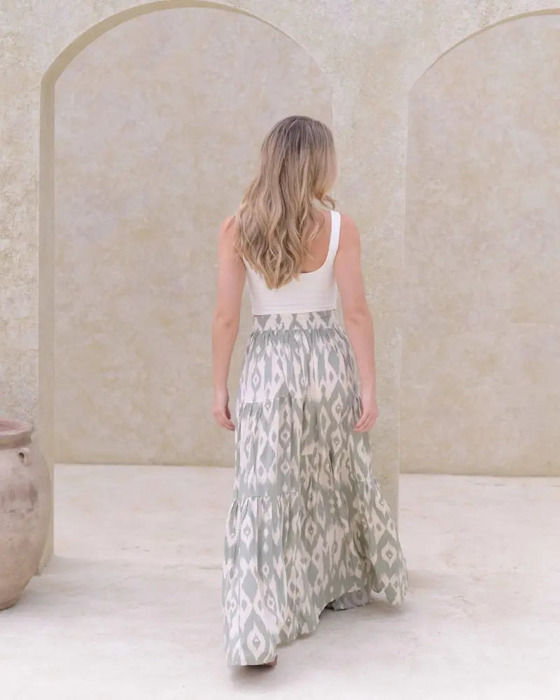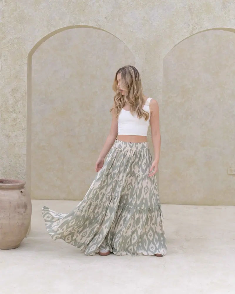 Experimenta la elegancia y la comodidad con la falda Belinda. Con su diseño cómodo y versátil, esta falda larga te hará lucir sofisticada y a la moda. Elástico en cintura.