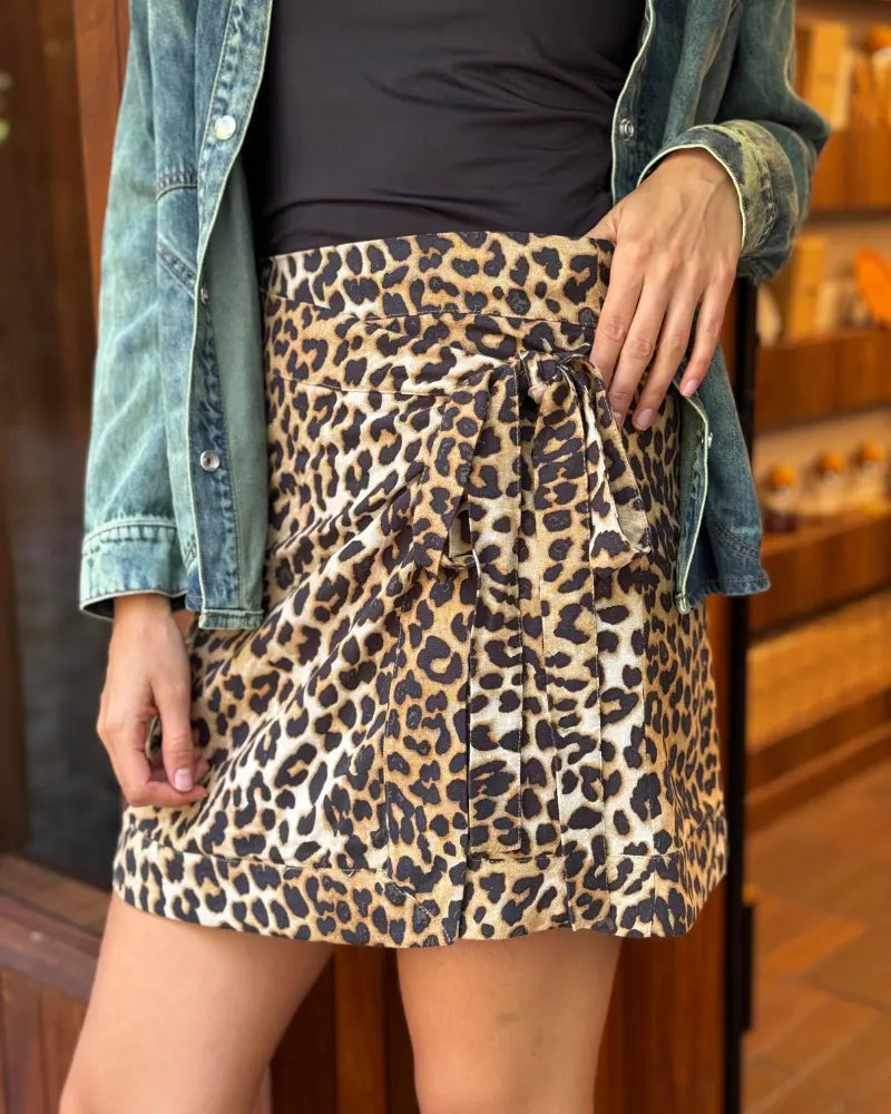 Atrévete a destacar con esta falda que combina estilo, actitud y un toque salvaje. Su estampado animal print es el protagonista ideal para elevar cualquier look, mientras que su lazo lateral le da ese detalle femenino y sofisticado que enamora.